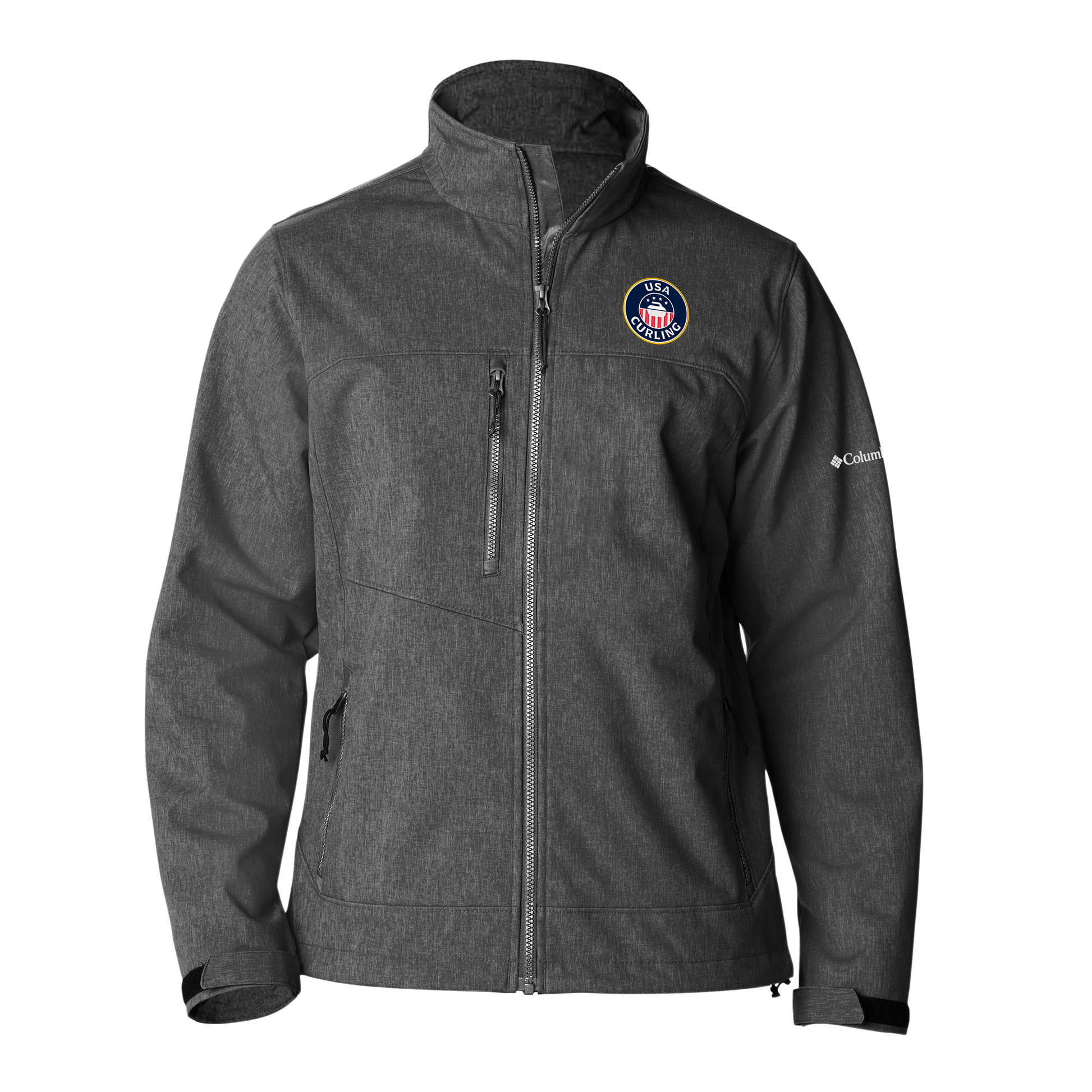 This Columbia wind-and-water-resistant softshell jacket is perfect for cooler temperatures and ideal for curling. It features adjustable hems and cuffs, a chin guard for warmth, and zippered pockets for small items like coins or the pre-game flip and your rock book. The drawcord hem provides a snug fit, and the USA Curling logo showcases your passion for the sport—available in grill.