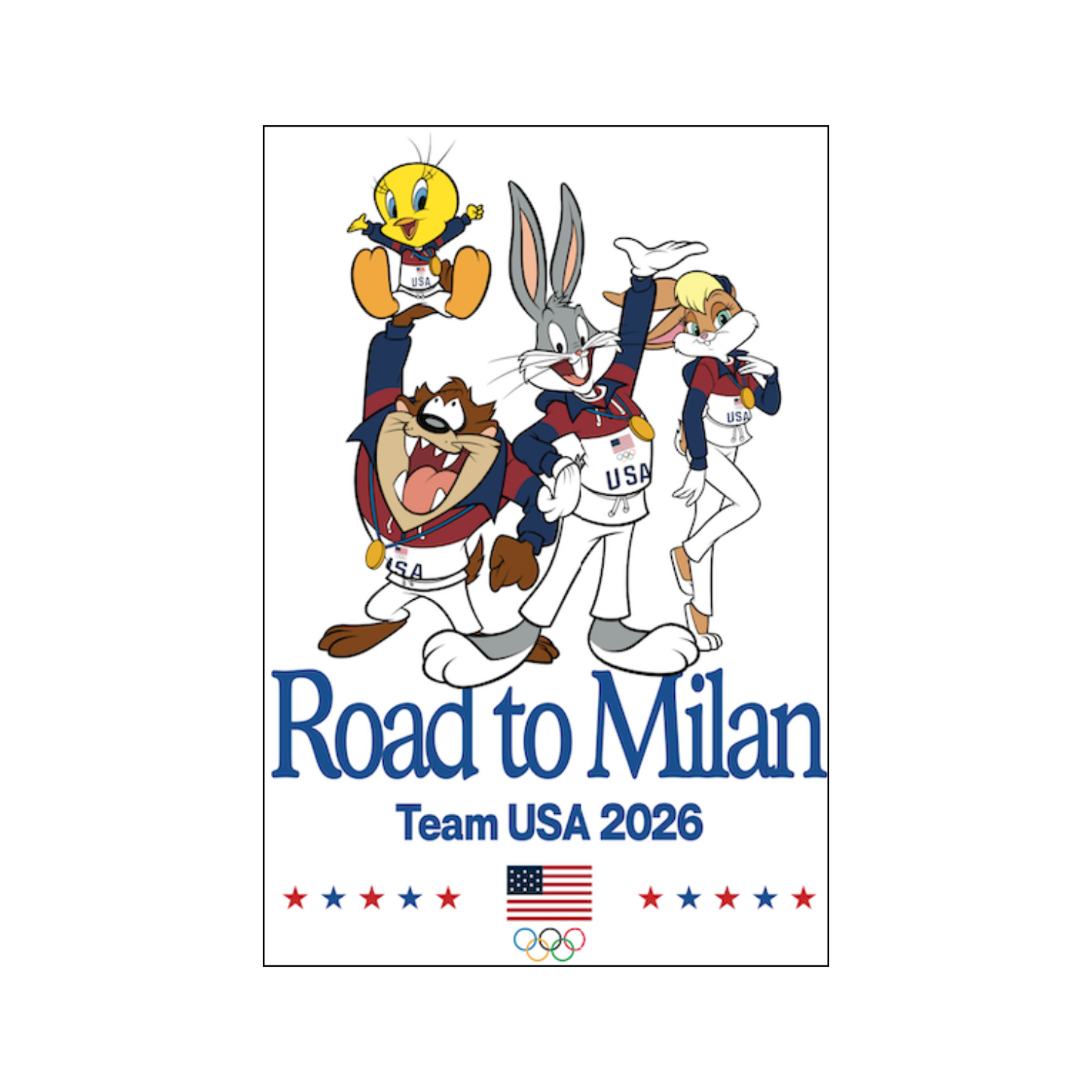 Looney Tunes TUSA Road to Milan magnet—perfect for your fridge as we head into the 2026 Winter Games.