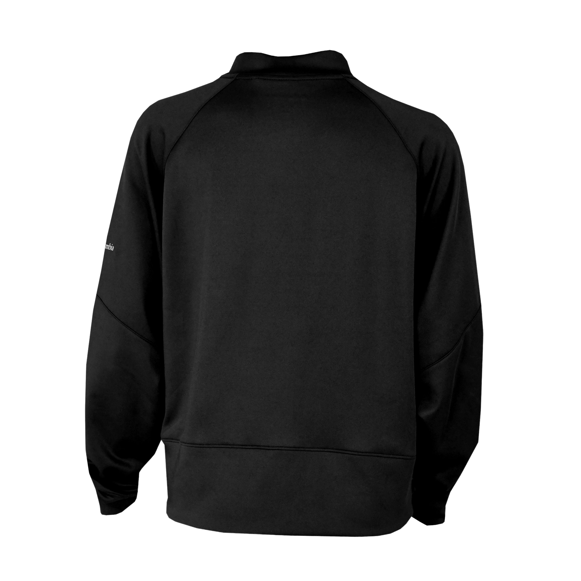 The Women's Par Performance Mock Neck in Black has a embroidered USA Curling logo on the left chest and a Columbia logo on the left arm.